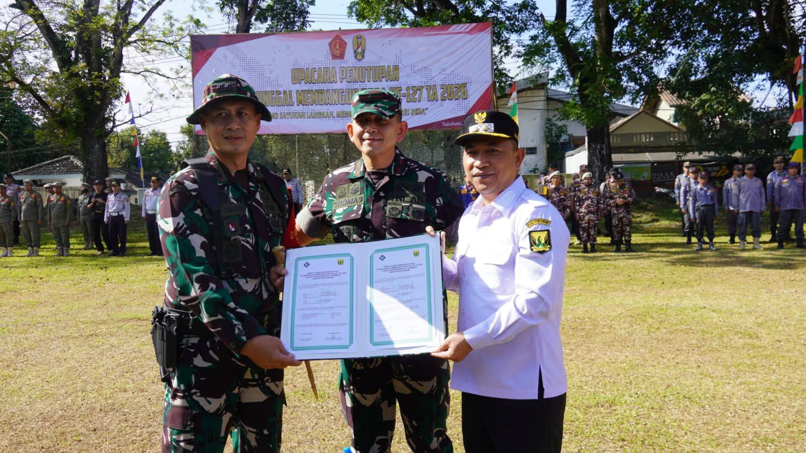“Saya mengikuti dari pembukaan, monitoring, hingga penutupan. Luar biasa, hasilnya sangat bagus. Bahkan sangat berguna bagi masyarakat,” ujarnya saat menghadiri upacara penutupan TMMD ke 127 TA 2026 tingkat Kodim 0607/ Kota Sukabumi di Lapang Perumnas Parakanlima lndah Desa Kertaraharja, Kecamatan Cikembar, Rabu, 11 Maret 2026.