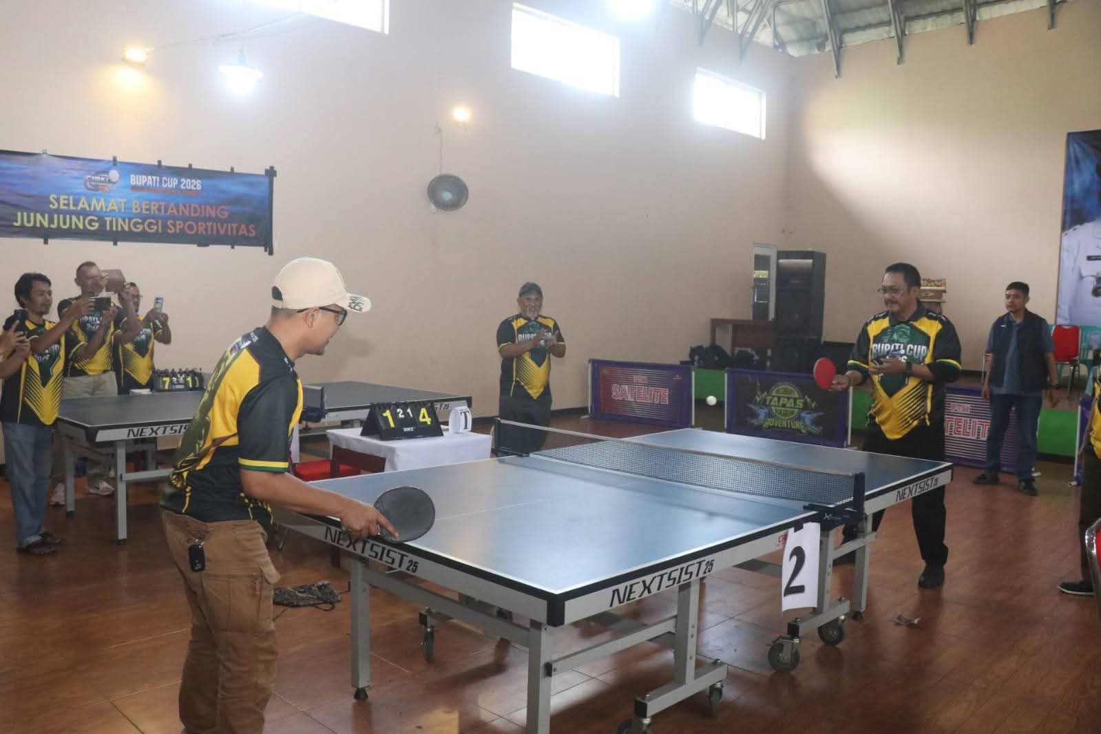 Turnamen Tenis Meja Bupati Cup 2026 dibuka langsung oleh Bupati Sukabumi. Pembukaan ditandai dengan pemukulan bola servis pertama oleh Bupati sebagai simbol dimulainya pertandingan.