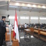 Bupati Sukabumi H Asep Japar hadir langsung dalam paripurna tersebut bersama Wakil Bupati H Andreas, Sekda H Ade Suryaman, jajaran Forkopimda, Forkopimcam, dan para undangan.