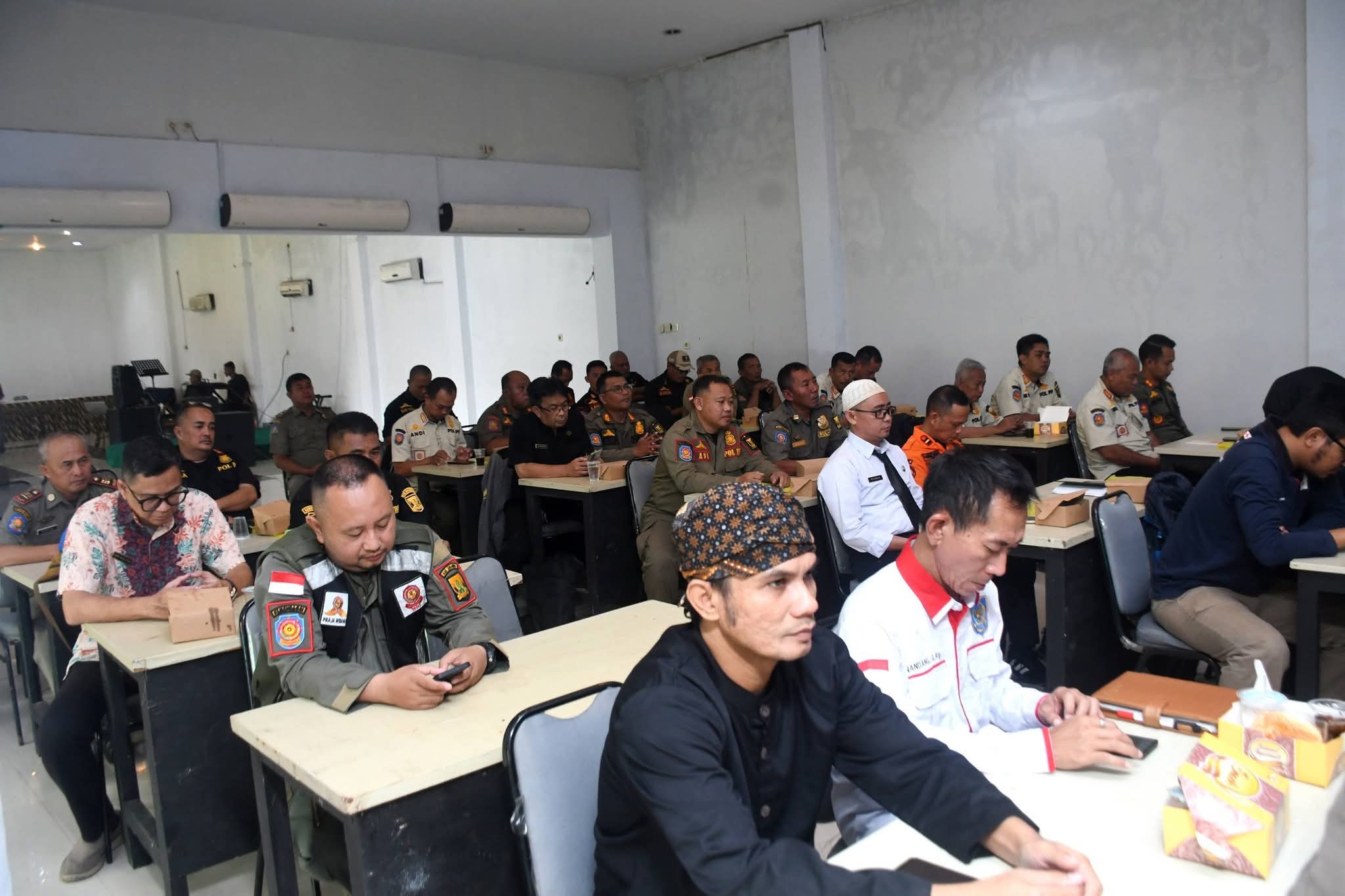 Selain evaluasi regulasi, rakor juga membahas persiapan pengukuhan Satlinmas tingkat kabupaten, kecamatan, hingga desa.