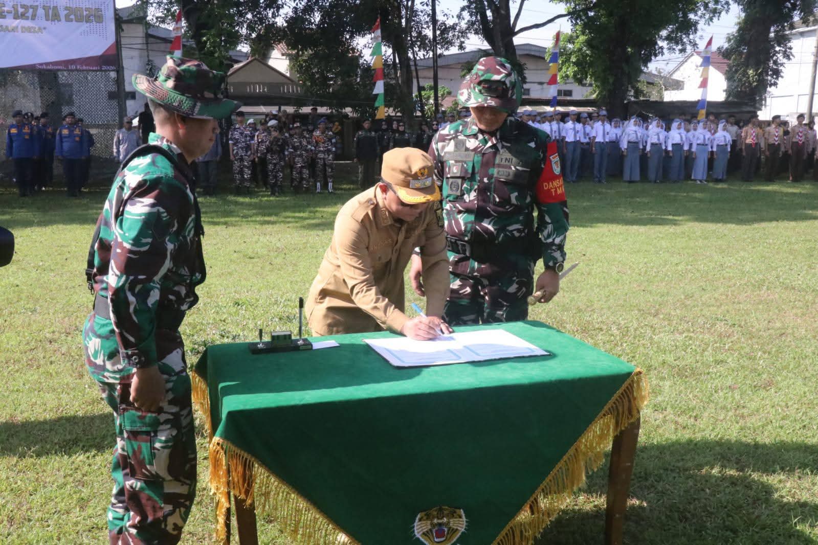 “Kita bersama-sama saling membahu mempercepat pembangunan Kabupaten Sukabumi,” ujarnya dalam pembukaan TMMD ke 127 tahun anggaran 2026 Kodim 0607/Kota Sukabumi di Lapang Desa Parakanlima, Selasa,10 Februari 2026.